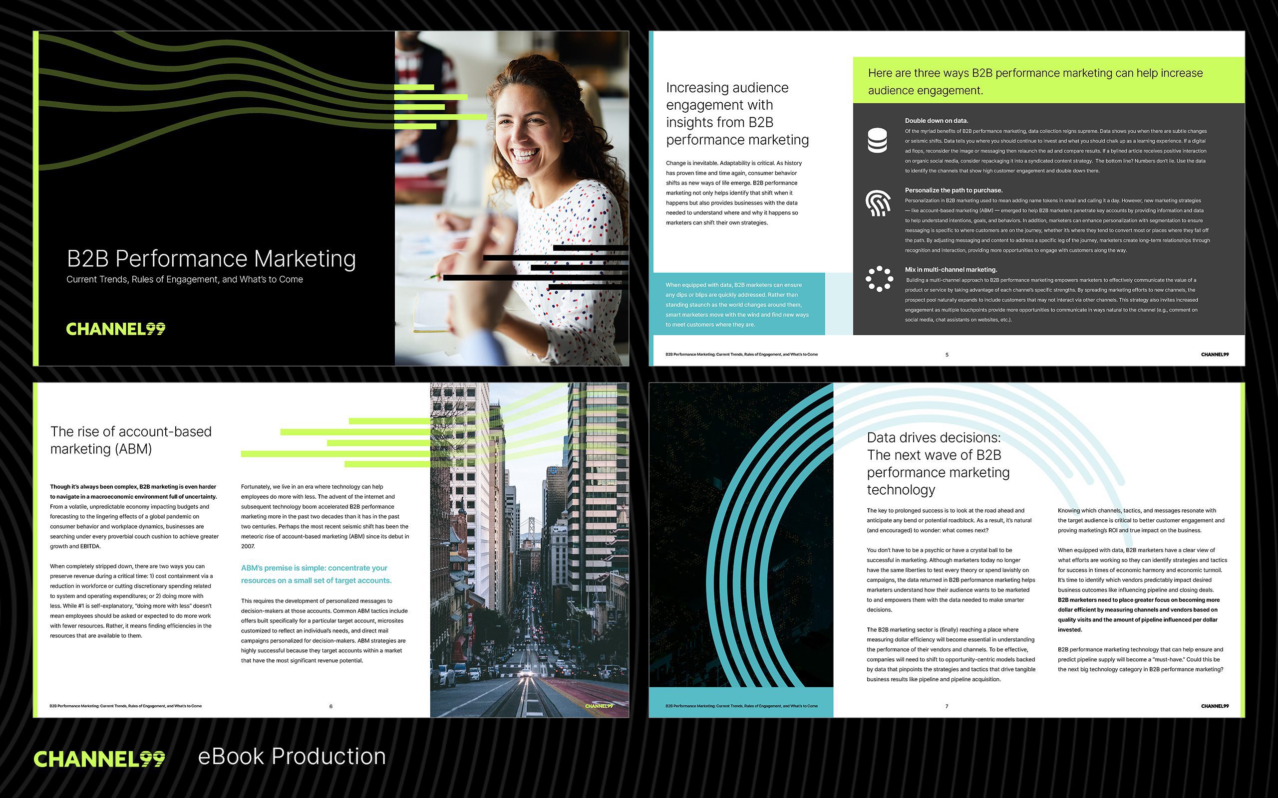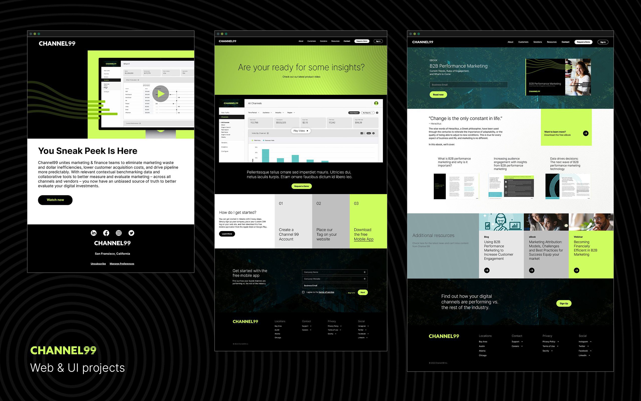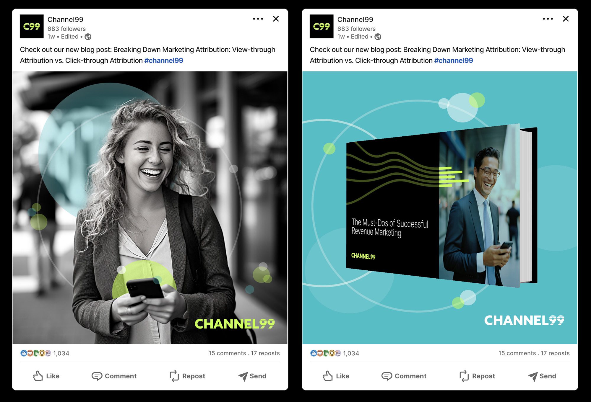 Here are various examples of work done for Channel 99: content, Website Landing Pages, advertising, and social media. Additionally, I did some interesting GenAI Branding with the DxM team.