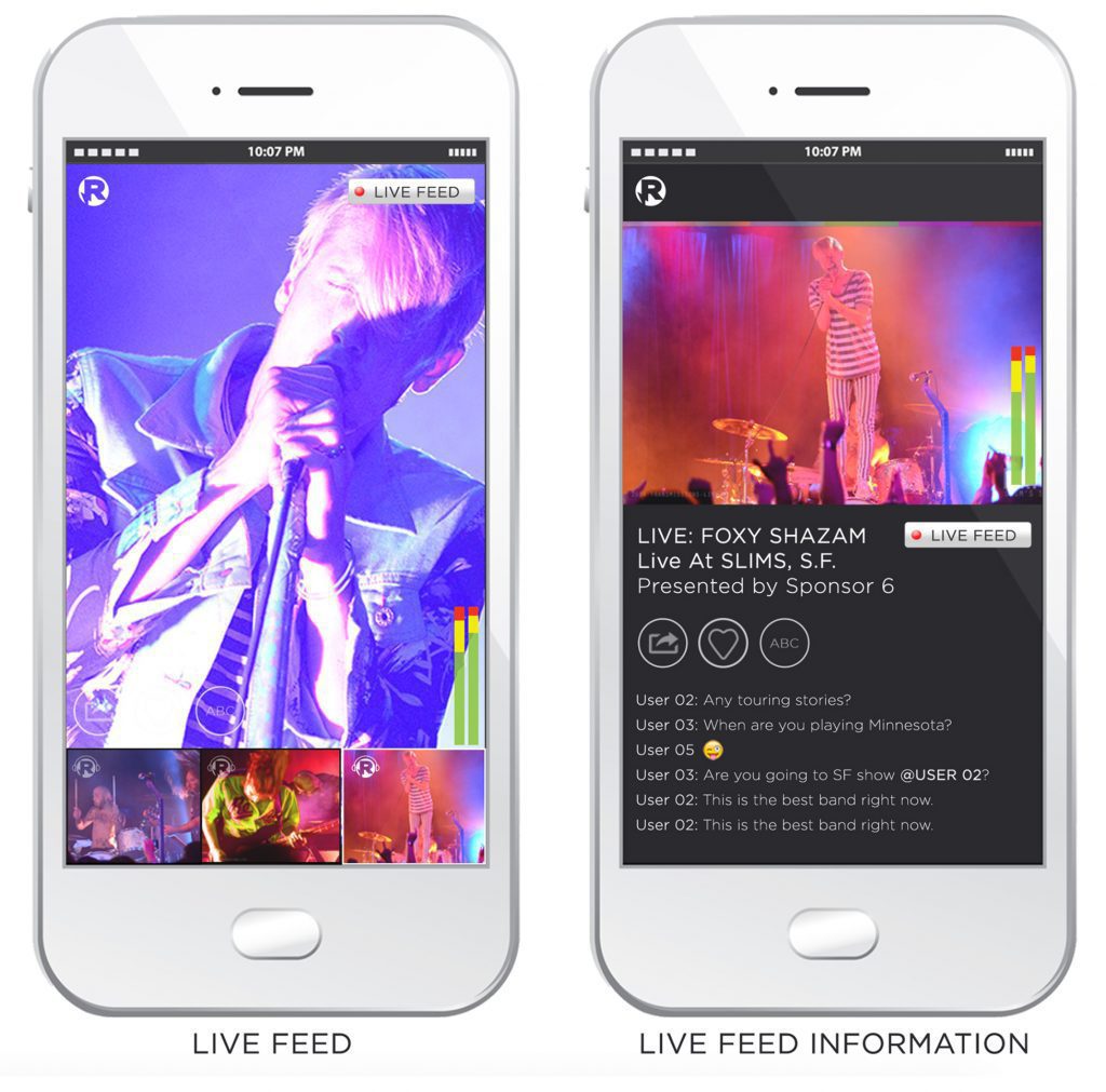 Design and UI mockups for a live video startup, Reverbalist. The goal for an edgy and on-trend look with a bold direction and clean user functionality.